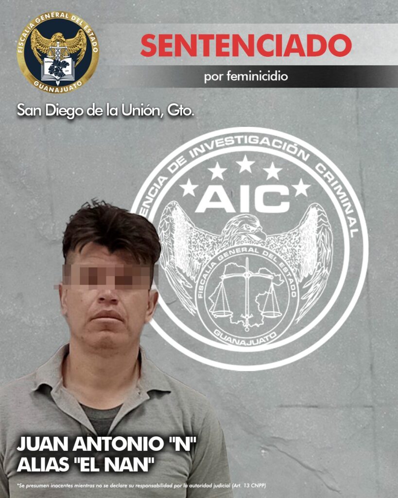 San Diego de la Unión, Gto. La Fiscalía de Guanajuato obtuvo sentencia de cárcel para un feminicida en San Diego de la Unión.
