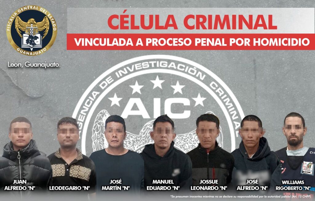 León, Gto. La Fiscalía de Guanajuato investigó una agresión con armas de fuego registrada el 10 de diciembre en la colonia Piletas IV en la ciudad de León, lugar donde resultó lesionado un hombre de la tercera edad, quien falleció a consecuencia de las heridas. Como resultado de dicha investigación, siete sujetos fueron vinculados a proceso penal por el delito de homicidio.