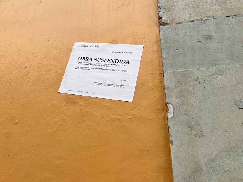 Incluso hay sellos del Instituto Nacional de Antropología e Historia, delegación Guanajuato, en el inmueble en la parte exterior del mismo, pero fueron tapados con cartulinas.