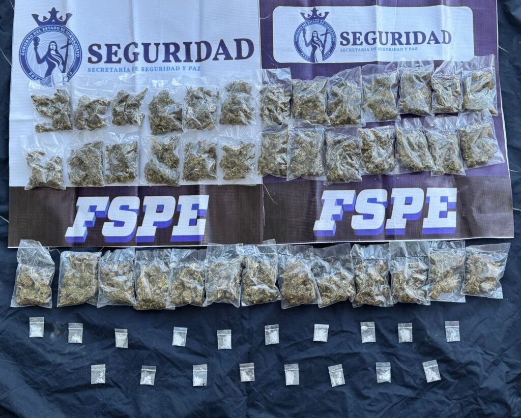 Al notar la presencia de los policías el hombre identificado como Luis “N” arrojó al suelo un objeto en el que los elementos de las FSPE encontraron 354 bolsas con una hierba seca con las características de la marihuana, y 18 bolsas tipo ziploc con una sustancia granulada color blanco con las características del cristal.