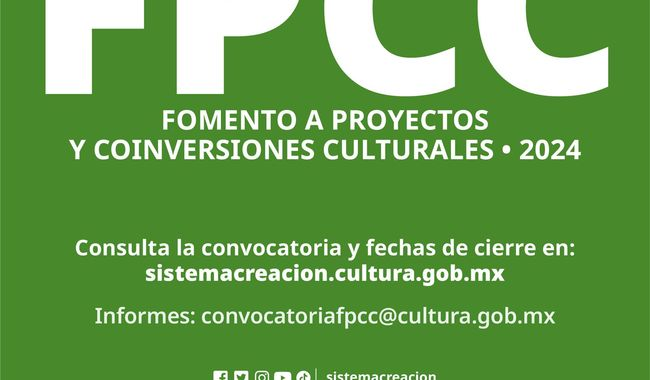 CDMX.- La Secretaría de Cultura del Gobierno de México, a través del Sistema Creación, publica la convocatoria de la vertiente Fomento a Proyectos y Coinversiones Culturales 2024, que ofrece apoyos económicos hasta por $750,000.00 (setecientos cincuenta mil pesos 00/100 M.N.) en coinversión para el desarrollo de proyectos artísticos y culturales en un plazo máximo de 12 meses.