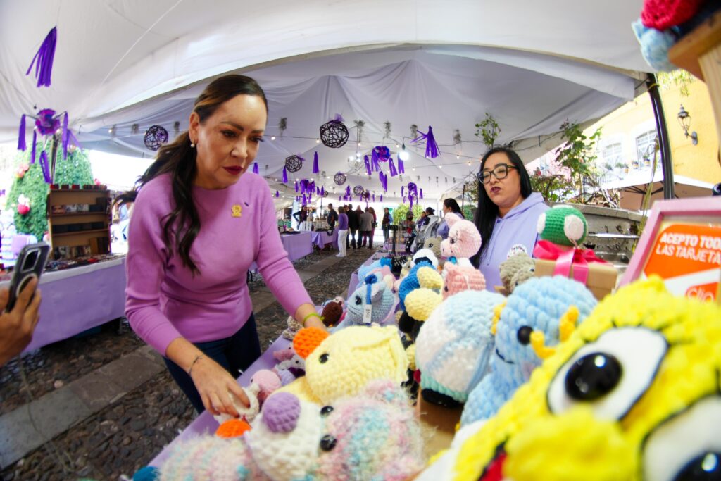 Guanajuato, Gto. Con la participación de 28 mujeres emprendedoras, arrancó el tercer Bazar Violeta, edición navideña, en la Plazuela de San Fernando de Guanajuato Capital.