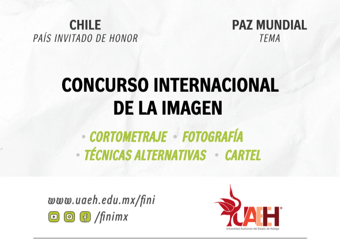 Guanajuato, Gto.- La Universidad Autónoma del Estado de Hidalgo (UAEH) y el Festival Internacional de la Imagen (FINI), en su décima cuarta edición, convocan al Concurso Internacional de la Imagen FINI 2025, el cual contempla cuatro géneros artísticos: Cartel (técnica libre), Fotografía (análoga o digital), Técnicas alternativas y Cortometraje, todos al respecto del tema “Paz mundial”.