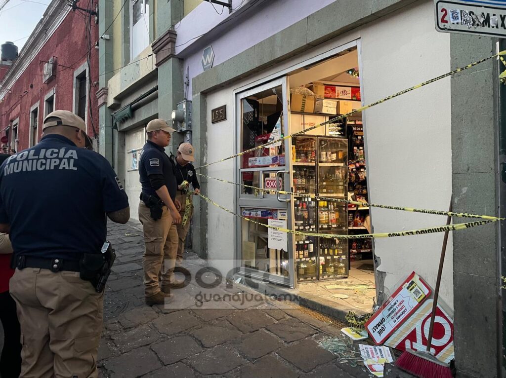 Guanajuato, Gto. Un hombre de 85 años de edad aproximadamente perdió el control del volante del vehículo que conducía y chocó contra la puerta de una tienda de conveniencia ubicada en la subida a Tepetapa, casi equina con la calle Pardo en Guanajuato capital.