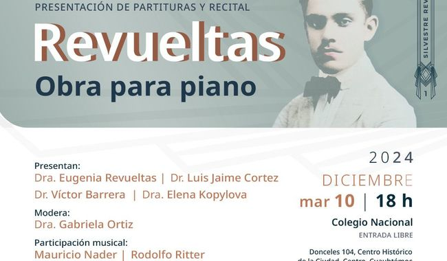 La presentación estará a cargo de Eugenia Revueltas y Luis Jaime Cortez, con la participación musical de Mauricio Nader, Rodolfo Ritter y Elena Kopylova. Los pianistas ejecutarán algunas de las primeras composiciones que Revueltas escribiera durante su formación con Rafael J. Tello. La mayoría son de 1915, aunque también se incluyen de 1919 y la última, titulada Tragedia en forma de rábano, que data de 1924.