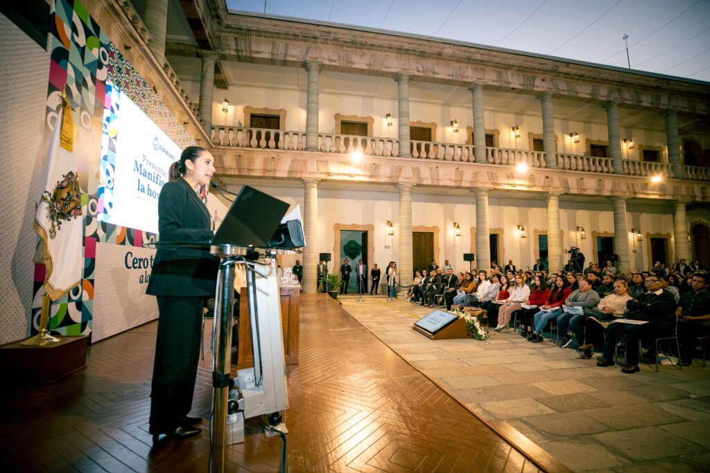 Expresó que este manifesto compromete a todos los servidores estatales a actuar con honestidad y transparencia y sancionar contundentemente la corrupción y, como ejemplo, presentó la plataforma de la secretaría de la Honestidad en donde está pública su declaración patrimonial y de interés. En el mismo sitio web se encuentran las declaraciones de todo su gabinete legal y ampliado, en formatos descargables, en sus versiones públicas.
