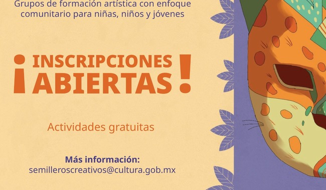 CDMX.- La Secretaría de Cultura del Gobierno de México, a través del programa Cultura Comunitaria, invita a niñas, niños y jóvenes de todas las regiones del país a formar parte de los Semilleros Creativos: grupos de formación artística gratuita con enfoque comunitario, conformados por infancias y juventudes en condiciones de vulnerabilidad social, quienes han encontrado en el arte una herramienta de transformación y construcción de paz.