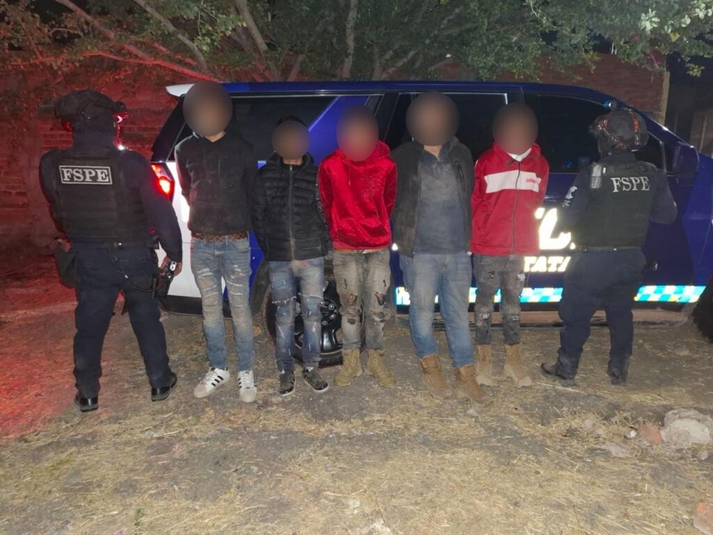 Durante la inspección, se procedió a la detención de cinco individuos originarios del estado de Jalisco, entre ellos tres menores de edad. El primer detenido fue identificado como Jorge N, de 18 años, quien portaba un arma corta calibre 4.5 mm. También se detuvo a Julián N, de 20 años, y a tres menores: Michael N, de 14 años; Johan N, de 15 años; y Ángel N, de 14 años.
