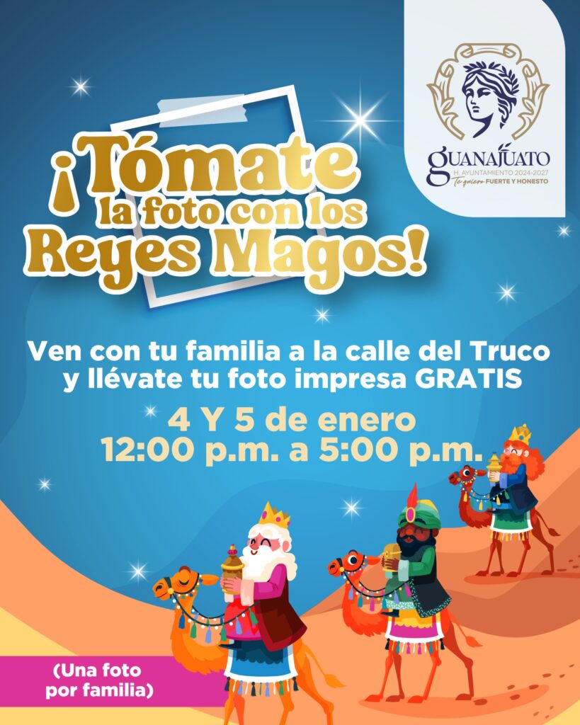 Guanajuato, Gto. La Presidenta Municipal de Guanajuato, Samantha Smith, invita a todas las familias guanajuatenses y visitantes a tomarse la foto con los Reyes Magos este sábado 4 y domingo 5 de enero totalmente gratis.