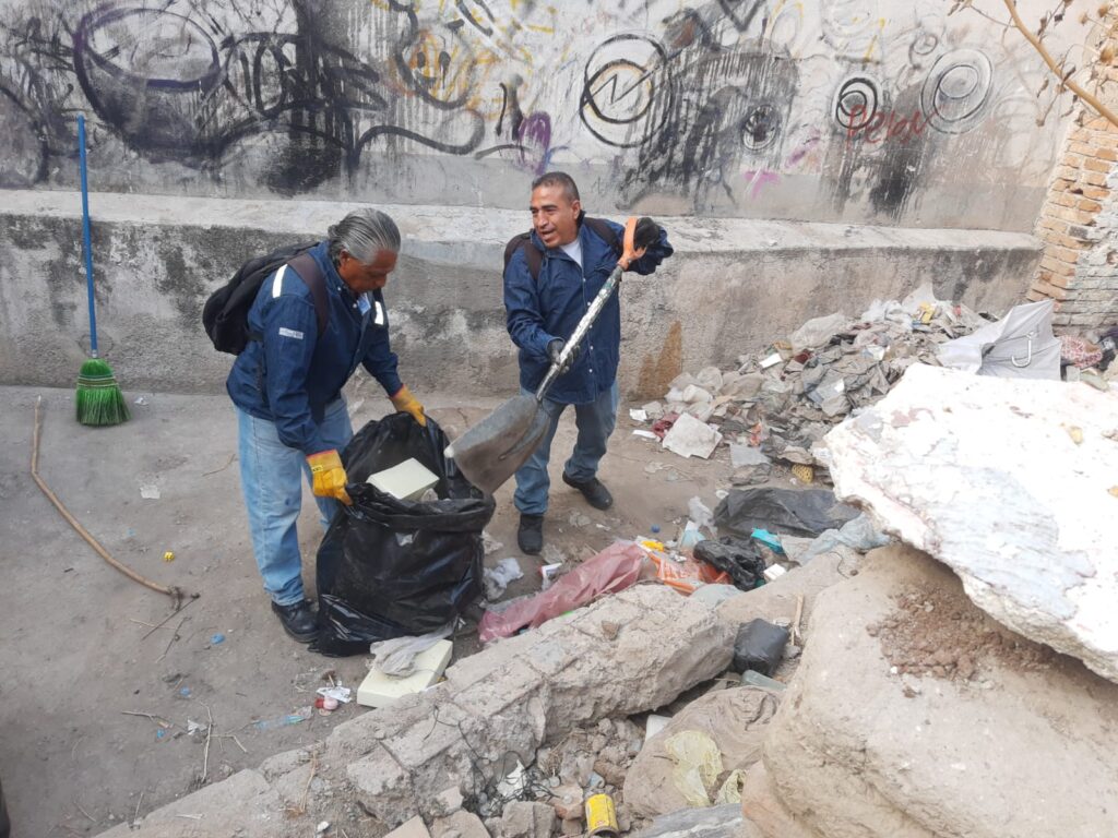 Guanajuato, Gto. En atención a un reporte ciudadano y para prevenir la creación de focos de insalubridad e inseguridad, personal de la Dirección General de Servicios Públicos de Guanajuato Capital realizó una jornada de limpieza en una propiedad en estado de abandono.