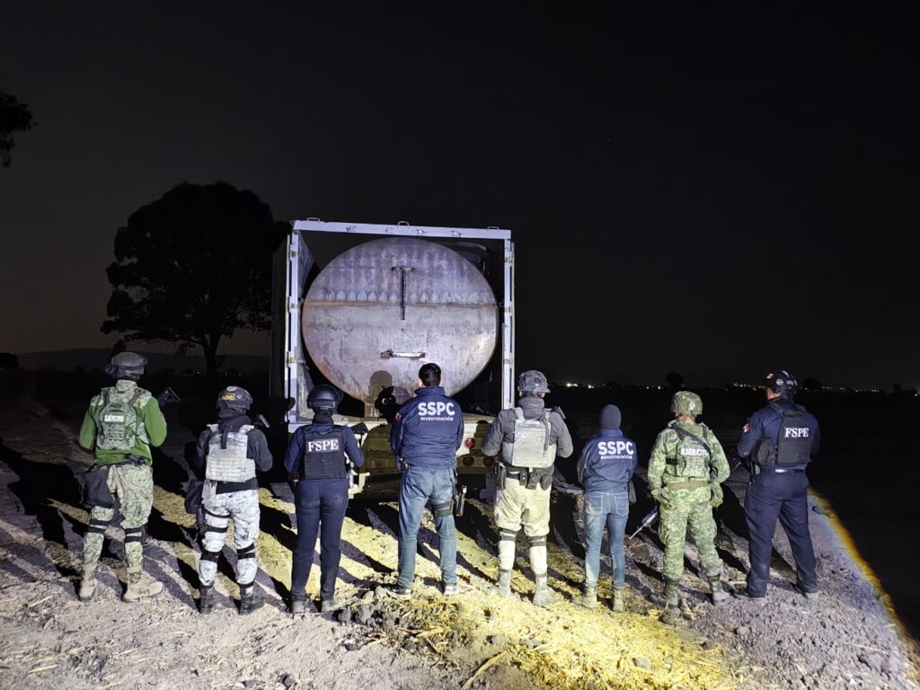Esto permitió localizar el punto exacto de la toma y el almacenamiento ilegal en la comunidad de Mexicanos, en el municipio de Villagrán. Se aseguró un camión de tres ejes con tanque cisterna de aproximadamente 20 mil litros, 13 tinacos cisterna enterrados con capacidad de mil 100 litros cada uno, un generador de luz marca Honda y 52 mil litros de hidrocarburo.
