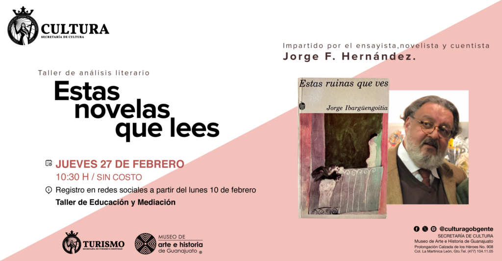 León, Gto.- El Museo de Arte e Historia de Guanajuato abre sus puertas a la literatura con el taller de análisis literario “Estas novelas que lees”, impartido por el reconocido ensayista, novelista y cuentista Jorge F. Hernández . La actividad se llevará a cabo el jueves 27 de febrero de 2025 a las 10:30 horas, en un formato híbrido que permitirá la participación tanto presencial como virtual.