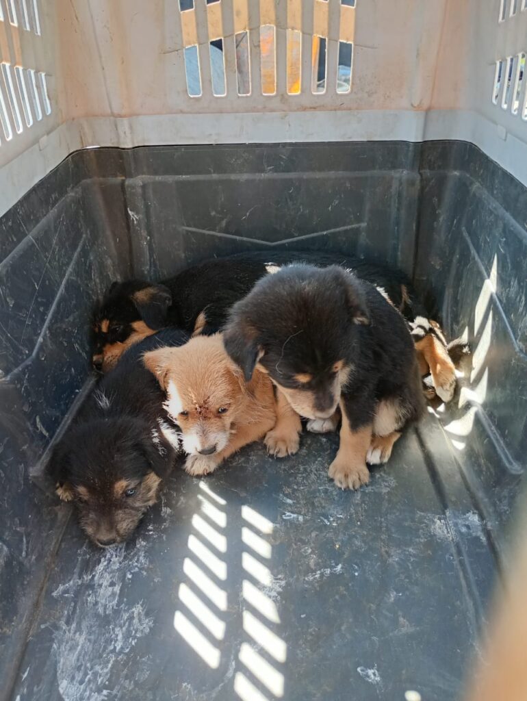 Guanajuato, Gto. La Policía Ambiental de Guanajuato Capital rescató a cuatro cachorros que fueron abandonados en un contenedor de basura de la subida al Panteón Nuevo.
