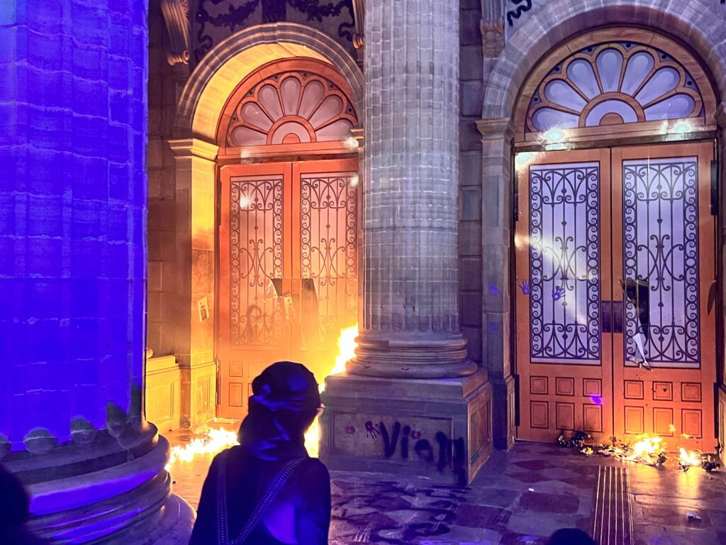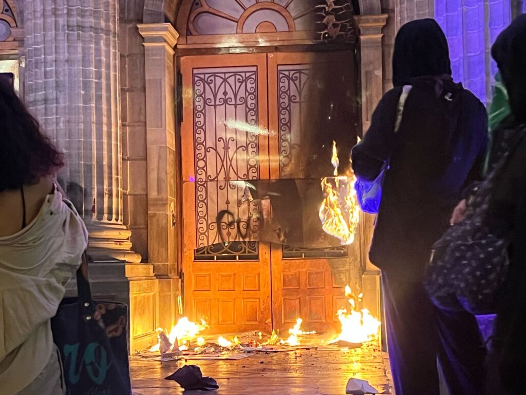 En la marcha de la capital, la cual comenzó y terminó en el Teatro Juárez, las marchantes terminaron quemando una de las puertas del inmueble catalogado como monumento histórico y todas las mujeres gritaron: “¡fuimos todas!”.
