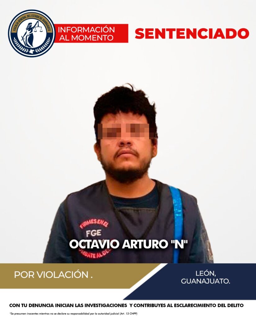 León, Gto. La Fiscalía General del Estado de Guanajuato logró que OCTAVIO ARTURO “N” fuera condenado a 60 años de prisión tras comprobar su responsabilidad en el delito de *violación, cometido en agravio de una víctima, en la ciudad de León.