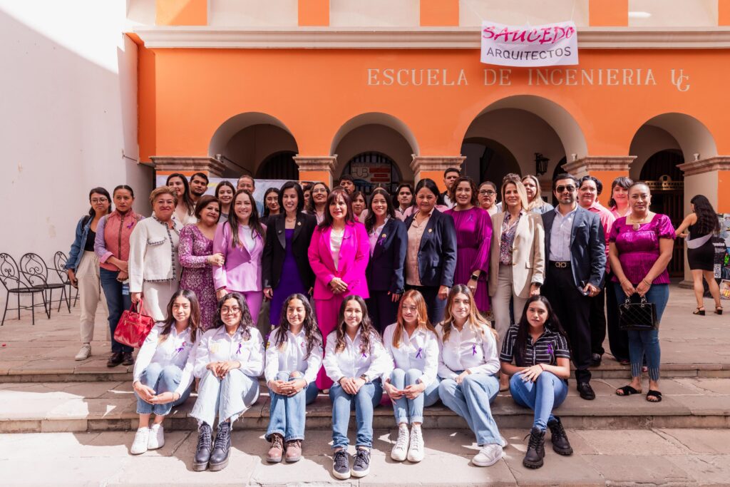 “Celebro y me entusiasma saber que hoy tenemos hombres involucrados en la lucha de las mujeres, hombres sororos que acompañan y apoyan esta causa”, agregó acompañada por Rosario Corona Amador, Secretaria del Nuevo Comienzo en el Gobierno de la Gente; y Dolores Saucedo, vicepresidenta del Colegio de Ingenieros Civiles.