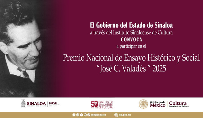 CDMX.- El Gobierno del estado de Sinaloa, a través del Instituto Sinaloense de Cultura (ISIC), convoca a personas investigadoras mexicanas radicadas en el país a participar en el Premio Nacional de Ensayo Histórico y Social “José C. Valdés” 2025.