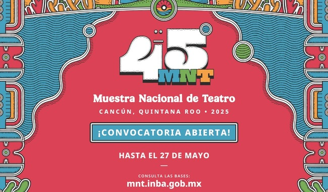 CDMX.- a Secretaría de Cultura del Gobierno de México y el Instituto Nacional de Bellas Artes y Literatura (INBAL), a través de la Coordinación Nacional de Teatro, y el H. Ayuntamiento del Municipio de Benito Juárez, Quintana Roo, a través del Instituto de la Cultura y las Artes del Municipio de Benito Juárez, convocan a participar en el proceso de selección para integrar la programación de la 45ª Muestra Nacional de Teatro (45MNT) la cual se llevará a cabo del 6 al 15 de noviembre de 2025 en la ciudad de Cancún, Quintana Roo.
