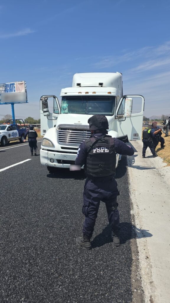 Pénjamo, Gto. Las Fuerzas de Seguridad Pública del Estado (FSPE), en coordinación con la Guardia Civil de Michoacán, la Policía Municipal de Pénjamo y la Guardia Nacional (GN), detuvieron al conductor de un tractocamión doblemente articulado tras una persecución interestatal que inició en el estado de Michoacán y concluyó en el municipio de Pénjamo. Durante el trayecto, el vehículo involucrado impactó una patrulla y un camión particular en su intento por evadir el cerco de seguridad.