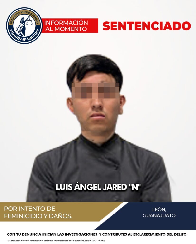 León, Gto. Una agente del Ministerio Público especializada en la Investigación de Delitos Cometidos en Contra de Mujeres por Razones de Género de la FGEG, logró obtener una sentencia condenatoria de 26 años y 6 meses de prisión contra LUIS ÁNGEL JARED “N”, tras un procedimiento abreviado en el que se le encontró culpable de tentativa de feminicidio y daños por incendio.