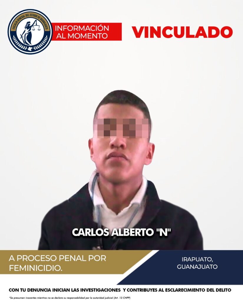 Irapuato, Gto. La noche del 18 de marzo de 2023, una joven fue asesinada en la colonia Apatzingán en la ciudad de Irapuato. Su pareja sentimental, CARLOS ALBERTO “N” fue detenido por Agentes de Investigación Criminal como presunto responsable, por lo que ya se encuentra en prisión preventiva en
