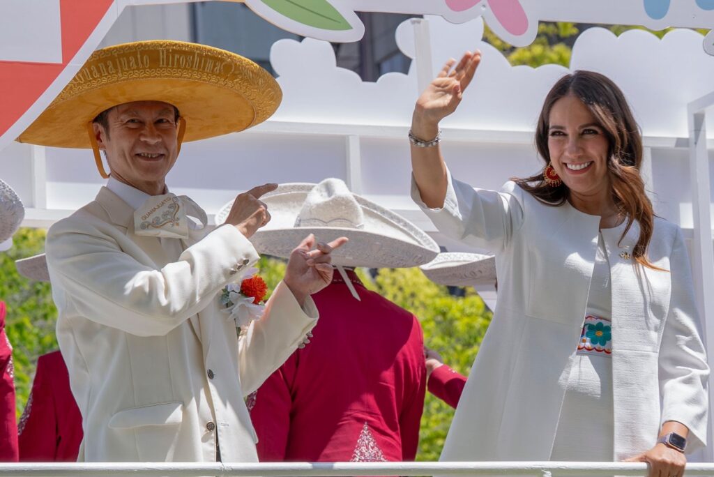 Continuando con la gira, la Gobernadora participó en el Desfile de las Flores, donde tuvo la oportunidad de recorrer las calles de Hiroshima y de forma cercana saludar a su gente.