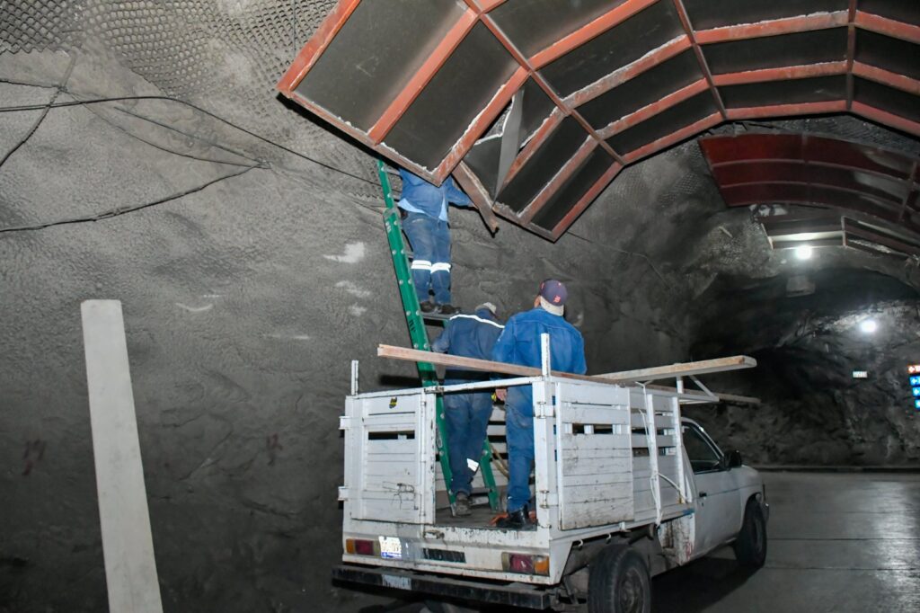 Guanajuato, Gto. La dirección de Obra Pública, a través del área de Mantenimiento, realizó trabajos de rehabilitación en la estructura metálica ubicada al interior del ramal del Túnel Minero en dirección al Túnel Constancia.