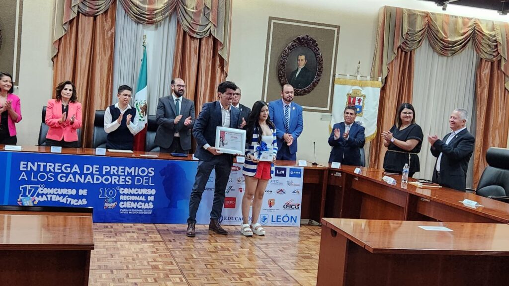 Ambos estudiantes fueron reconocidos por su destacada participación en esta competencia de alto nivel académico que contempla las áreas de física y matemáticas. En la premiación realizada en la Sala del Cabildo de la Presidencia Municipal de León, se contó con la presencia de autoridades municipales, representantes académicos y miembros del comité organizador del concurso, quienes reconocieron a los tres primeros lugares.