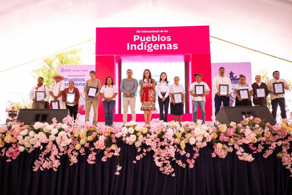 - La Gobernadora de la Gente encabezó la Conmemoración del Día Internacional de los Pueblos Indígenas, donde recibió el Bastón de Mando y un collar de flores de los pueblos Chichimeca y Otomí