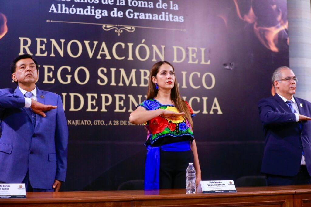 Durante su mensaje, la Gobernadora Libia subrayó que su administración ratifica el firme compromiso de seguir trabajando por las causas y los más altos anhelos de las y los guanajuatenses.