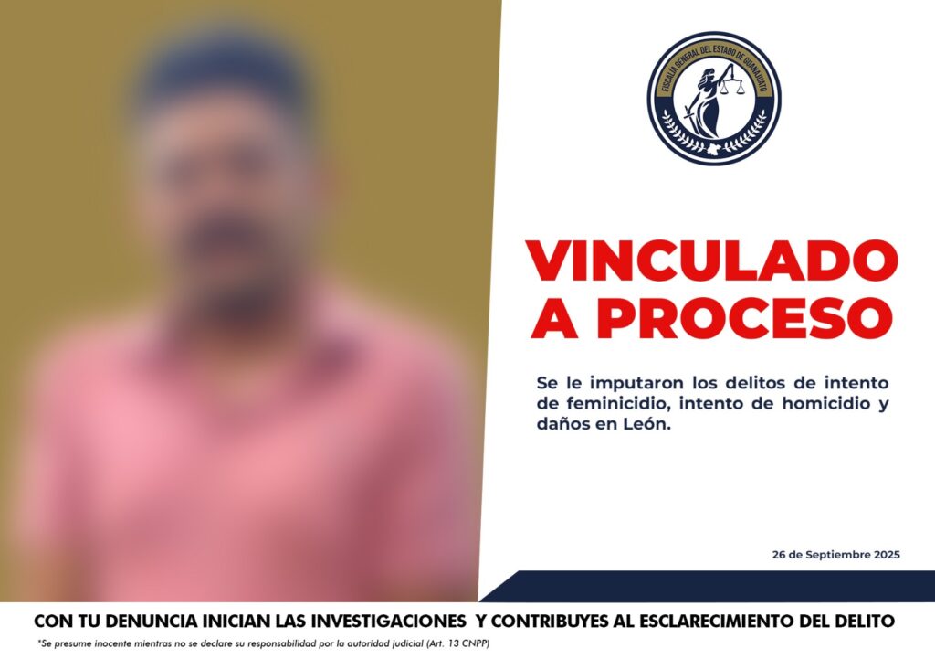 León, Gto. El 11 de septiembre de 2025, en la colonia Jardines de San Miguel, en León, MIGUEL ÁNGEL “N” fue detenido por elementos de la Secretaría de Seguridad, Prevención y Protección Ciudadana del Municipio, luego de que atacó con un cuchillo a su pareja y a sus hijos menores, lesionando a uno de ellos mientras intentaban huir.