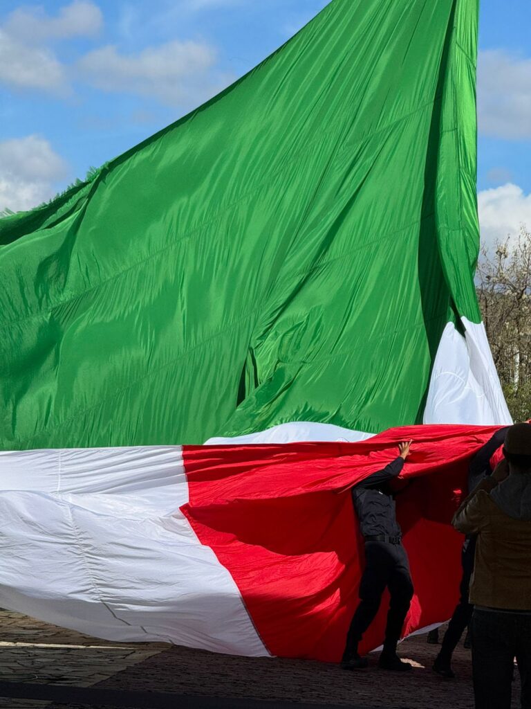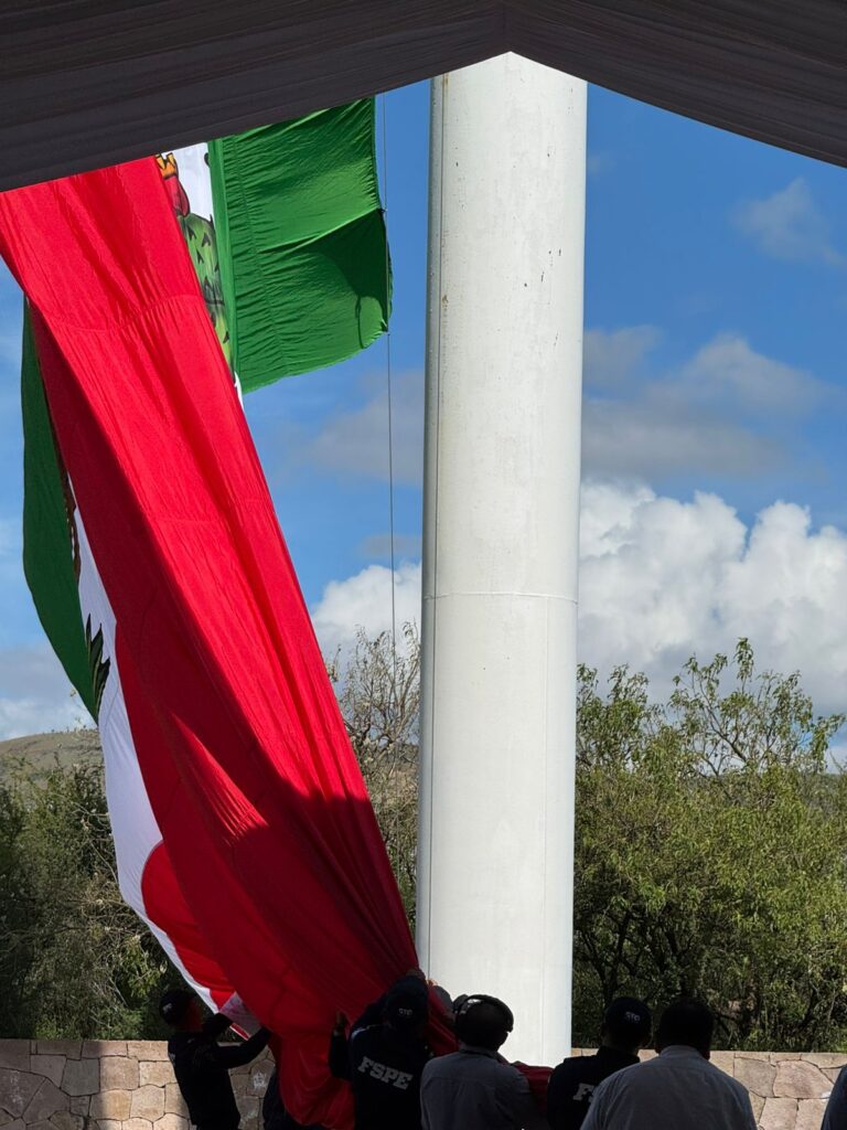 Mientras se rendía honores al lábaro patrio y elementos de las Fuerzas de Seguridad Pública del Estado realizaban el izamiento, una fuerte ráfaga de viento generó que la bandera hiciera un efecto paracaídas y el pendón verde se desprendiera del asta bandera.
