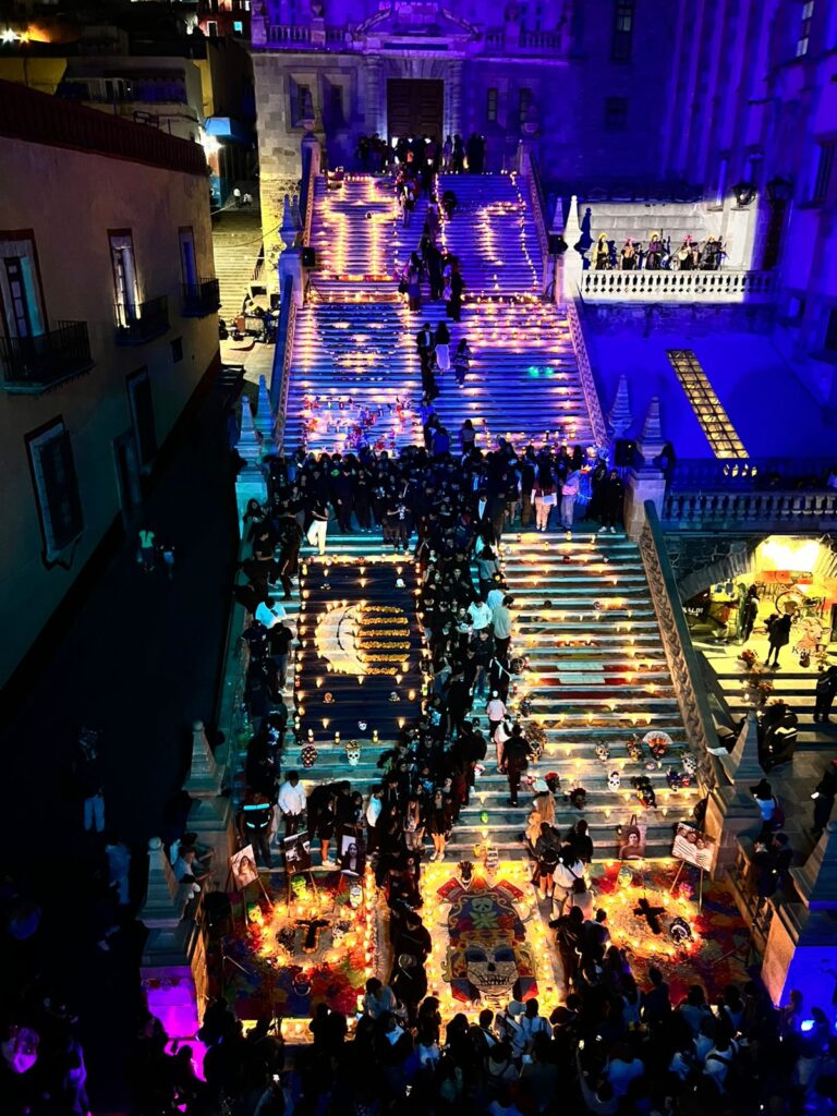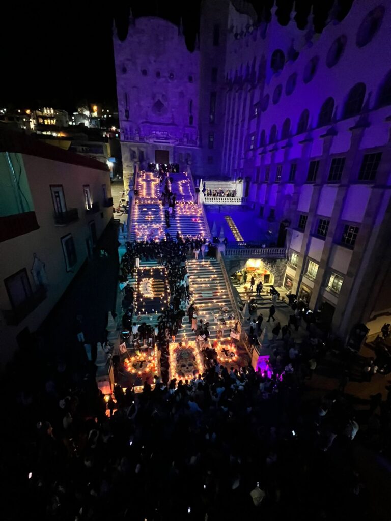 Guanajuato, Gto. Con profundo respeto y sentido de comunidad, la Preparatoria Oficial de la Universidad de Guanajuato, dedicó este año su tradicional mega ofrenda de Día de Muertos, a los seis jóvenes estudiantes que perdieron la vida en un accidente carretero en Valle de Santiago – Yuriria el pasado 18 de marzo de 2025.