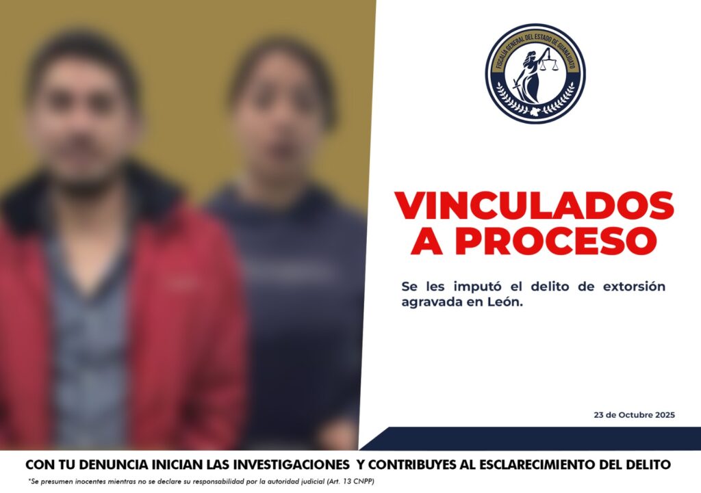 León, Gto. En un resultado significativo en la lucha contra el delito de la extorsión, la Fiscalía General del Estado, a través de la Fiscalía Especializada en Delitos de Alto Impacto, logró la vinculación a proceso de SERGIO EDUARDO “N” y DIANA IVONNE “N”, detenidos por su presunta responsabilidad en el