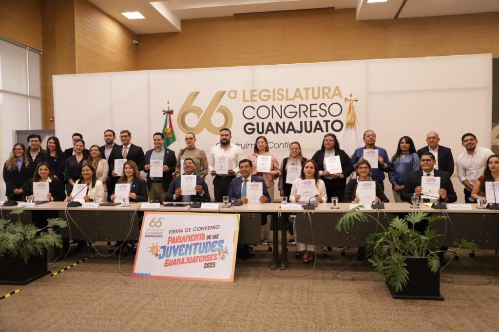 Guanajuato, Gto.- Se llevó a cabo la firma de un convenio de colaboración para realizar el Parlamento de las Juventudes Guanajuatenses 2025, iniciativa que reúne esfuerzos del Congreso del Estado de Guanajuato, el Instituto Electoral del Estado de Guanajuato (IEEG), la Secretaría de Educación de Guanajuato (SEG), el Instituto para el Desarrollo y Atención a las Juventudes del Estado de Guanajuato (JUVENTUDES); la Procuraduría de los Derechos Humanos del Estado de Guanajuato (PRODHEG),y la Universidad de Guanajuato (UG).
