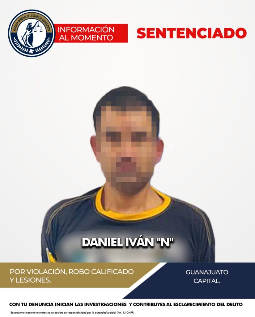 ciudad de Guanajuato, donde un hombre identificado como DANIEL IVÁN “N” alias “el atlanta”, fue capturado y llevado ante un Juez, como responsable de varios delitos, entre ellos violación, lesiones y robo.