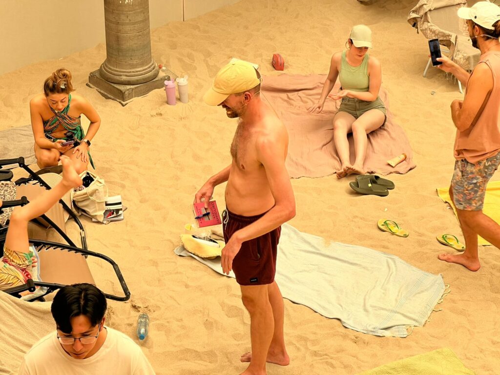 Está puesta en escena cuestiona las contradicciones humanas, a la vez que disfrutan la playa, critican el daño que la propia humanidad le hace al medioambiente.