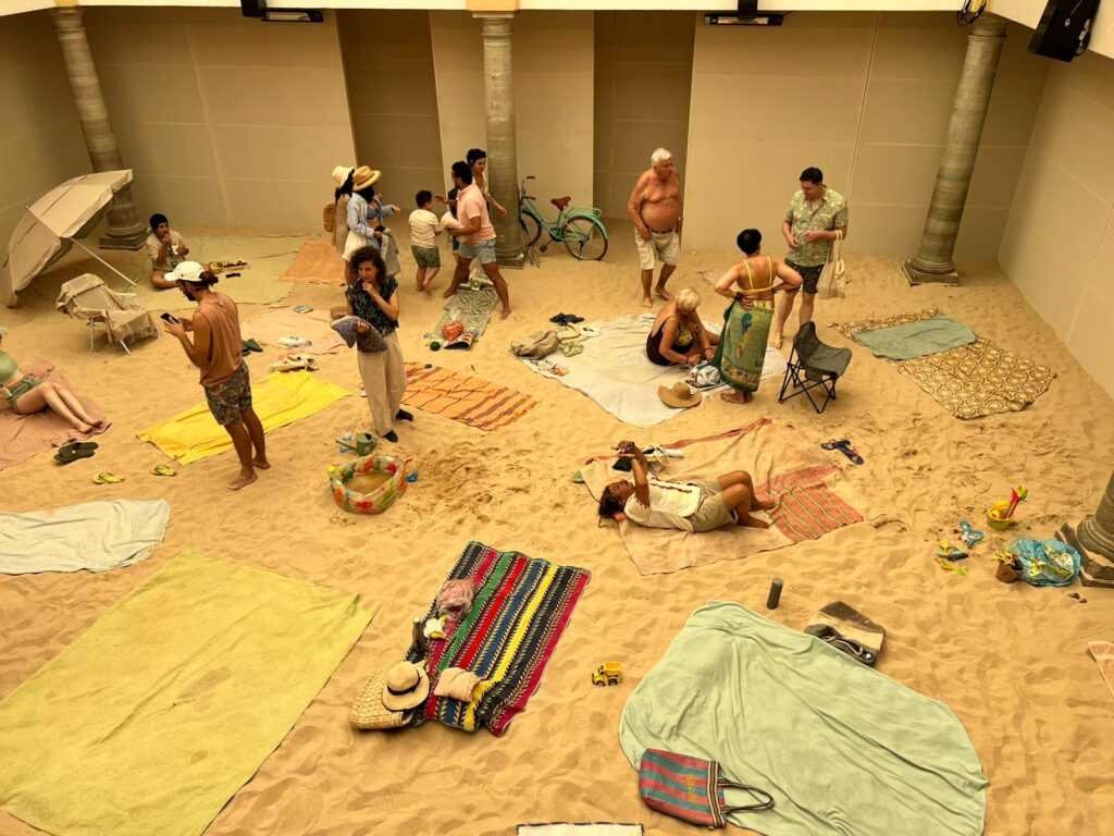 Transforma un escenario en una playa artificial donde los espectadores se convierten en testigos de todo lo que puede ocurrir en “un día común” en la arena. El público termina siendo el mar que inunda toda la escena.