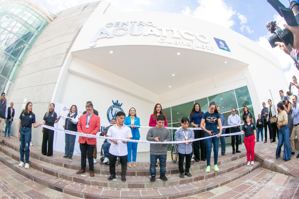 Guanajuato, Gto. Autoridades estatales y municipales reabrieron el Centro Acuático del Macro Centro Deportivo de Guanajuato capital, después de 3 años de trabajos de rehabilitación; el espacio beneficiará a más de 72 mil personas.