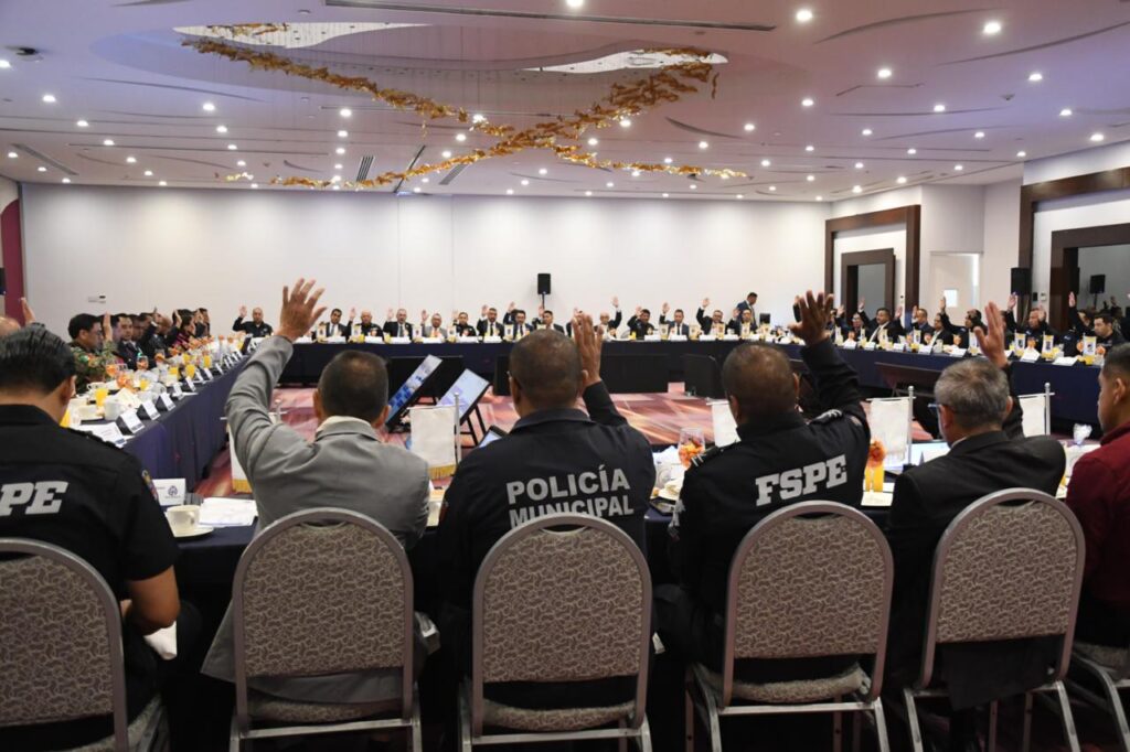 Durante la sesión, destacó la baja sostenida de un 60.7 % del promedio diario de homicidios dolosos en la entidad, gracias al esfuerzo compartido entre autoridades de todos los niveles.