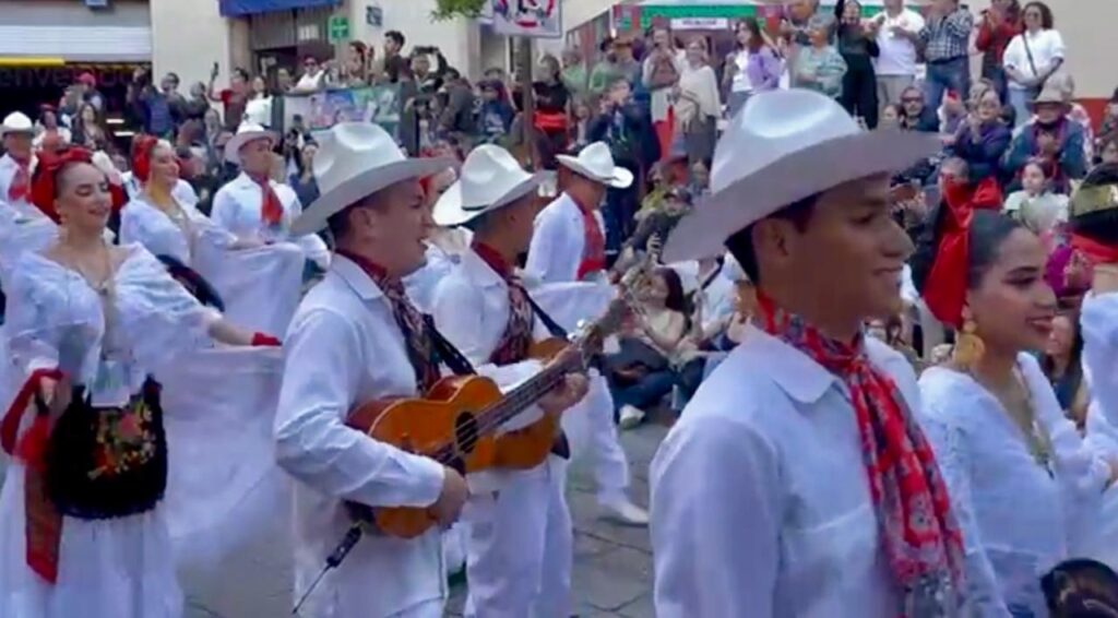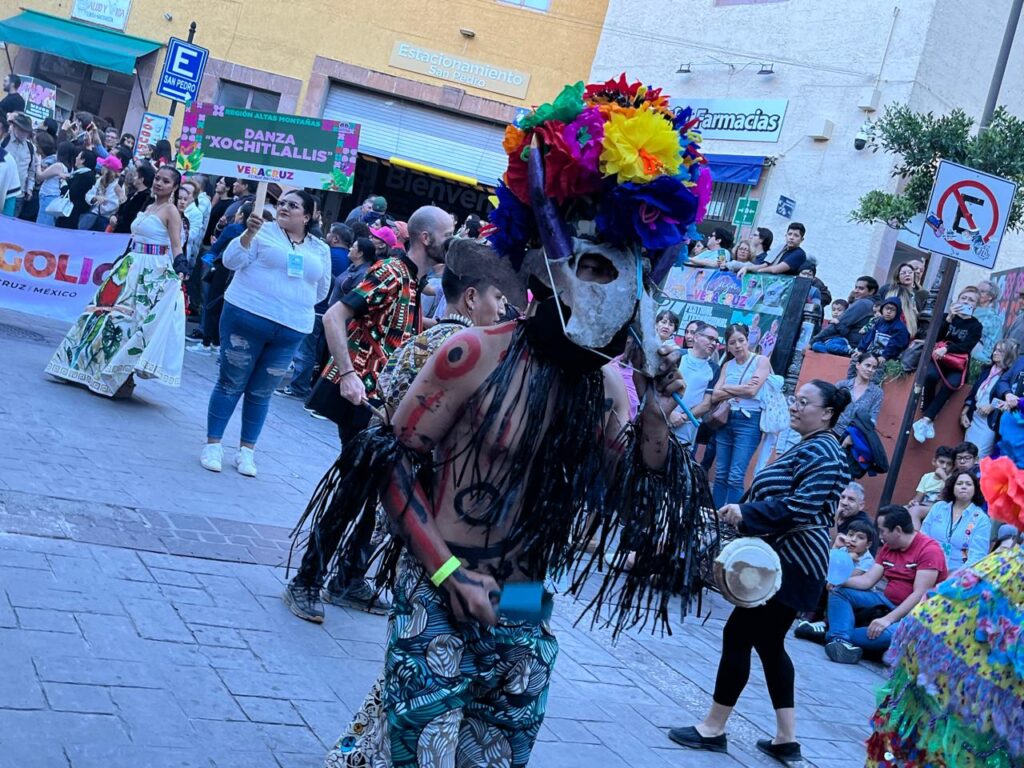 Y qué decir del son jarocho, mientras se rascaban las jaranas, jóvenes oriundos de distintos sitios del estado invitado, con su tradicional vestimenta blanca y en los pies el genuino tacón veracruzano, hicieron eco con el zapateado sobre las calles de la capital mientras al ritmo “La Bamba”, “El Coco”, “El Cascabel” o el “Colás”, melodías emblemáticas de la cultura veracruzana.