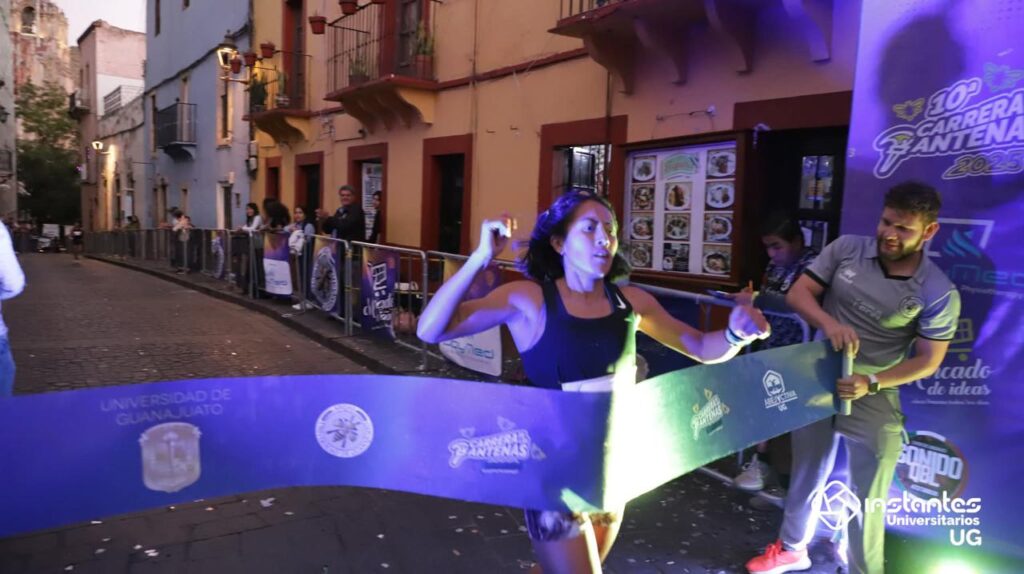 Guanajuato, Gto.- La fiesta universitaria de la activación celebró la 10a Carrera Atlética de Las Antenas, que reunió a más de un millar de estudiantes y personas en general, encabezada en la meta por Luis Ángel Pérez y la internacional Arián Chía Hernández.