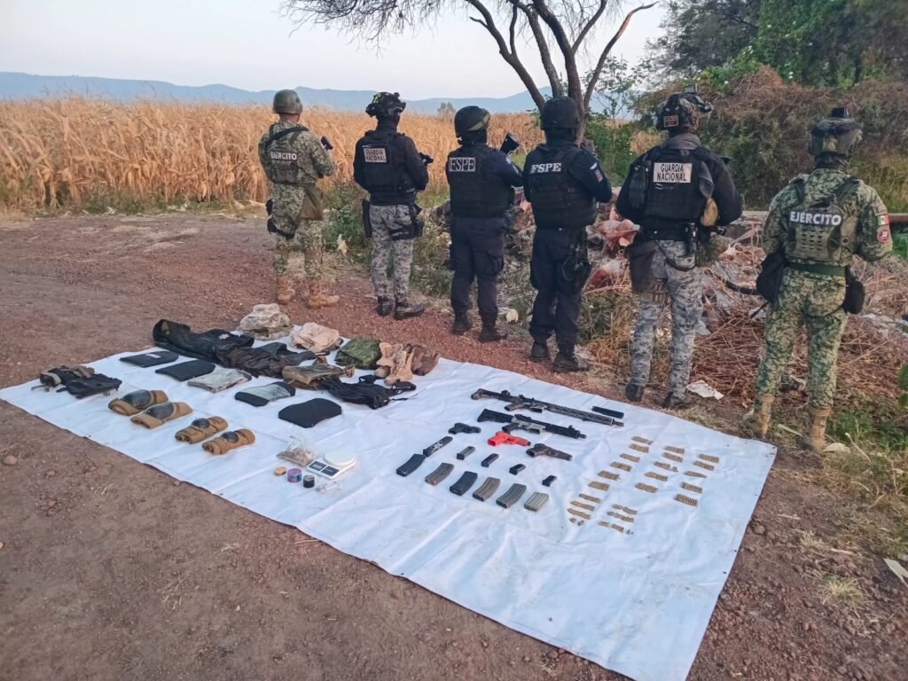 Guanajuato, Gto. En un operativo conjunto entre las Fuerzas de Seguridad Pública del Estado (FSPE) adscritas a la Secretaría de Seguridad y Paz, la Secretaría de la Defensa Nacional (DEFENSA) y la Guardia Nacional (GN) aseguraron armamento, equipo táctico y droga en la comunidad de Churipitzeo, en el municipio de Pénjamo.