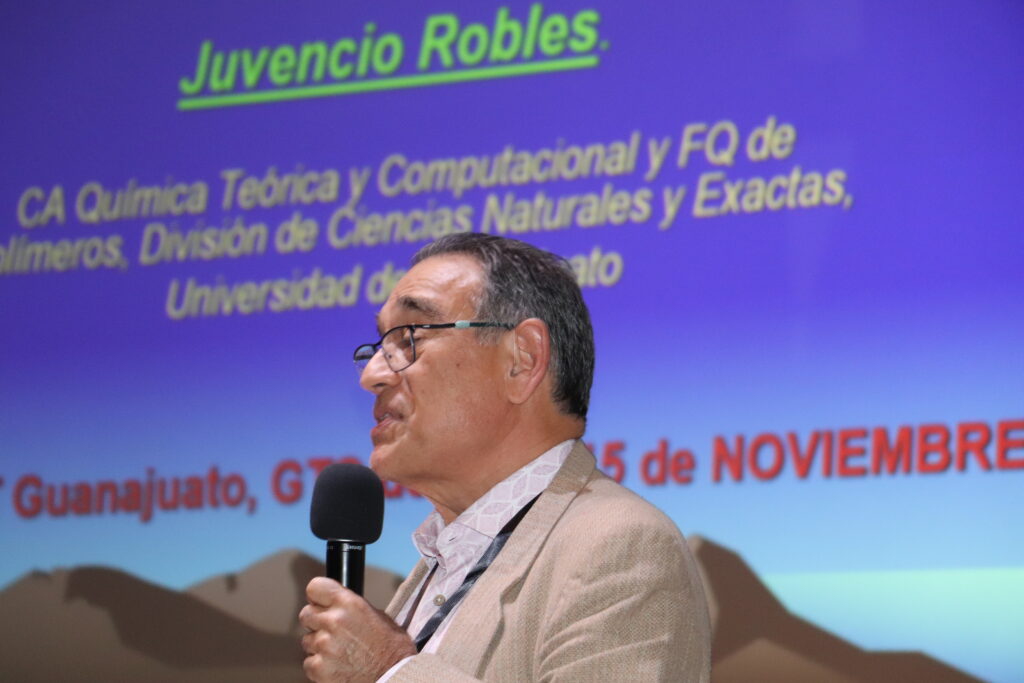 Guanajuato, Gto.- En el marco de la XXIII Reunión Mexicana de Fisicoquímica Teórica, que se desarrolla en la Sede Marfil del Campus Guanajuato de la Universidad de Guanajuato (UG), se rindió homenaje a la trayectoria del Dr. Juvencio Robles García.