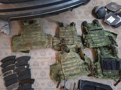 Dentro del domicilio se aseguraron 10 armas largas, vehículos con reporte de robo, equipo táctico, poncha llantas, cargadores y cartuchos reservados para uso exclusivo de la Fuerza Armada Permanente, entre otros objetos, por lo que, el Ministerio Público formuló imputación por los delitos de robo equiparado, acopio de armas prohibidas, posesión de cartuchos y cargadores de uso exclusivo de la Fuerza Armada Permanente, así como acopio de armas de fuego de uso exclusivo.