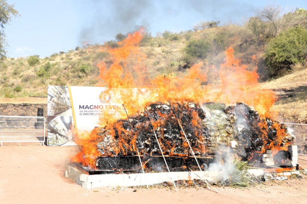 Guanajuato, Gto. En un hecho histórico, la Fiscalía de Guanajuato destruyó más de un millón 200 mil dosis de diversas drogas decomisadas en el estado, además de objetos e instrumentos utilizados en diversos delitos.