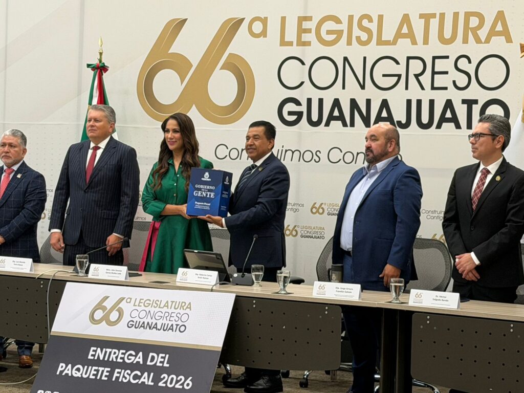 Guanajuato, Gto. La gobernadora de Guanajuato, Libia Dennise García Muñoz Ledo presentó ayer martes el Paquete Fiscal para 2026, el cual incluye una solicitud de dos créditos públicos, ambos por un total de ocho mil millones de pesos, con la finalidad de poner en marcha el acueducto Solís-León y algunos proyectos de infraestructura.