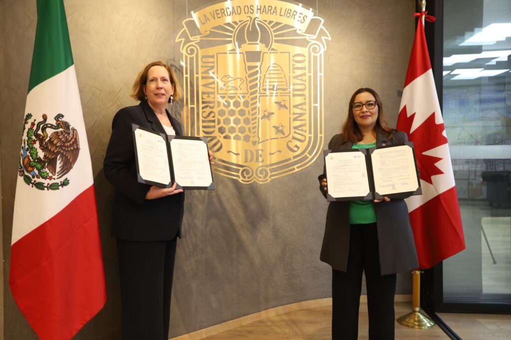 Guanajuato, Gto.- La Universidad de Guanajuato (UG) realizó en sus instalaciones la firma del Memorándum de Entendimiento con el Justice Institute of British Columbia de Canadá, con el objetivo de mantener la colaboración internacional y el desarrollo académico entre ambas instituciones.