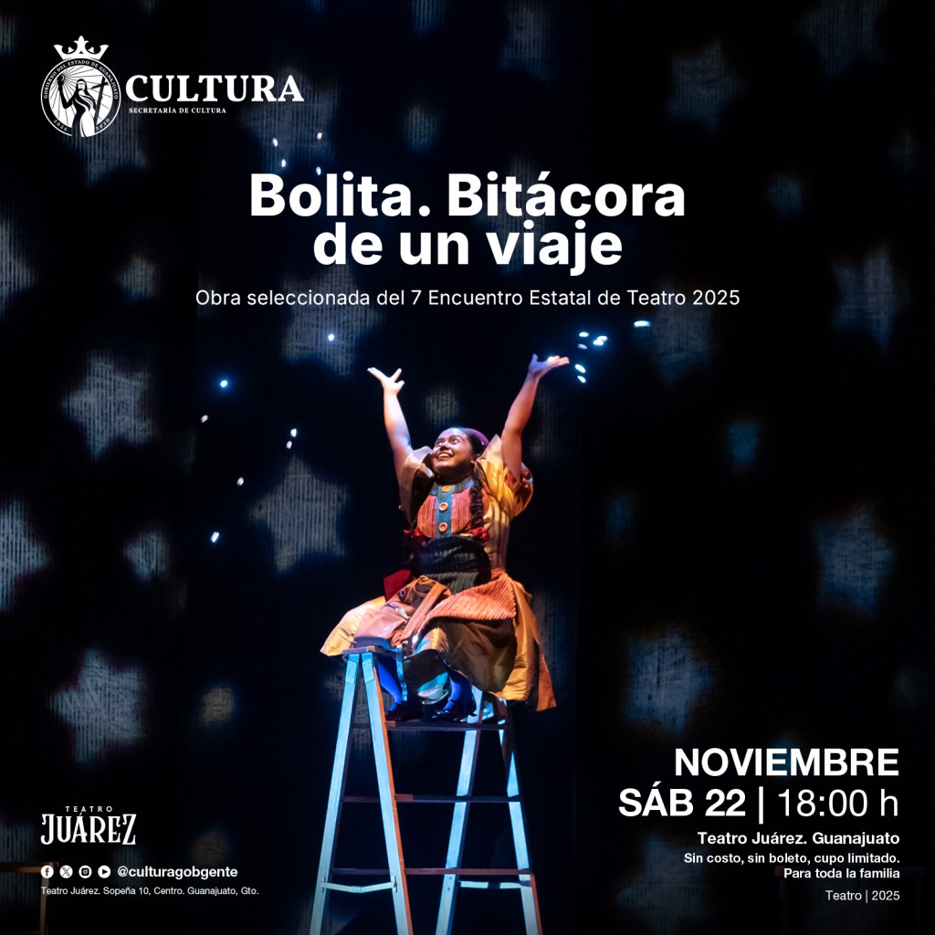 Guanajuato, Gto.- Después de ser seleccionada en el 7 Encuentro Estatal de Teatro, “Bolita. Bitácora de un viaje”, llega a Guanajuato capital para presentarse en el Teatro Juárez, este sábado 22 de noviembre, a las 18:00h horas.