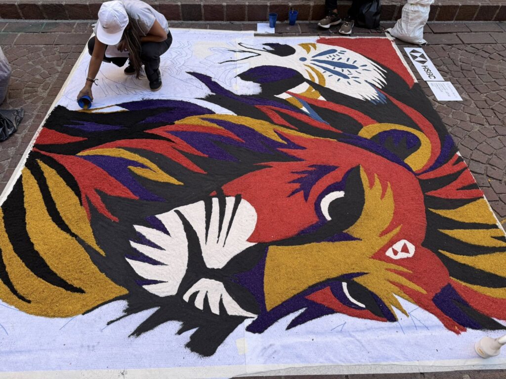 Fue desde las 7:00 de la mañana, cuando equipos iniciaron con sus tapetes de aserrín y marmolina. A pesar del frío y el viento, la energía de los participantes se mantuvo constante. El aserrín se humedeció para evitar que se vuele, mientras que quienes usan marmolina fijan su obra con spray para el cabello. Algunos tapetes se delimitaron con sogas debido a que algunos asistentes caminan sobre ellos.